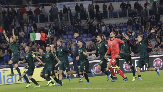 Timnas Italia memastikan diri lolos ke Piala Eropa 2020 usai menang 2-0 atas Yunani di Kualifikasi Piala Eropa Grup J Stadion Olimpico, Ahad (13/10) dini hari WIB.