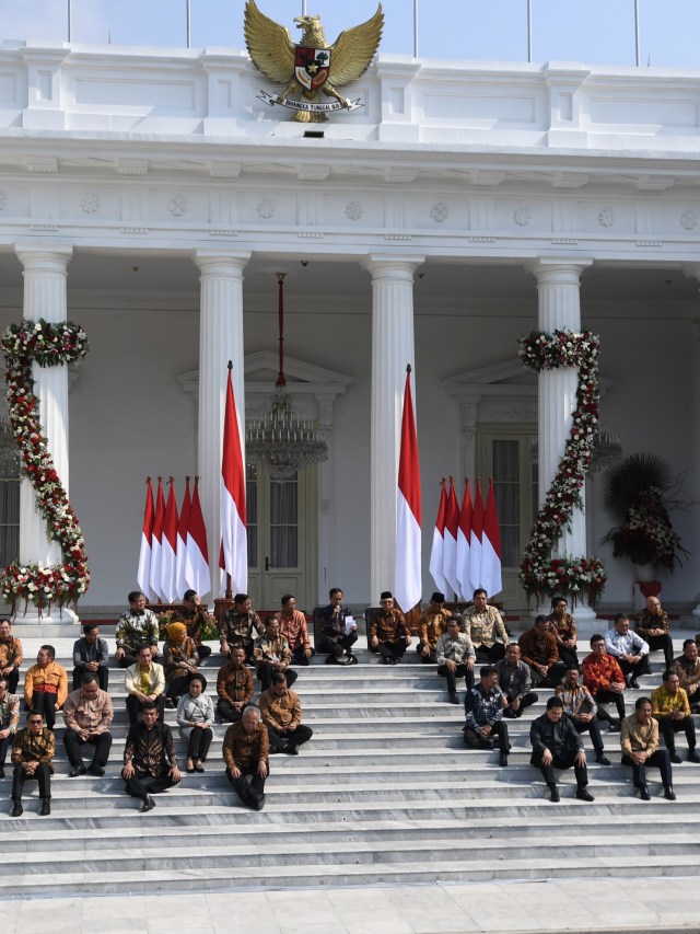 Hari ini, 38 nama itu diumumkan dan dikenalkan di Istana. Para pembantu presiden tersebut duduk di veranda Istana bersama Jokowi dan wakilnya, Ma'ruf Amin.