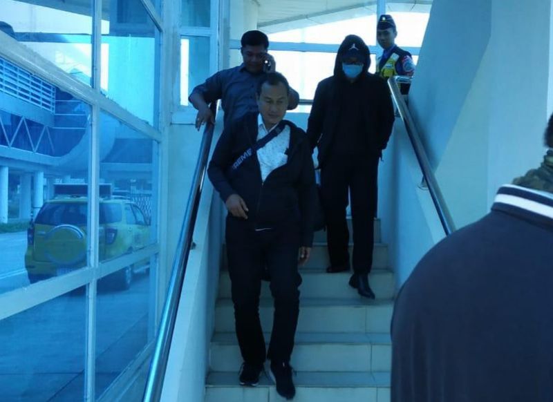 Usai mendarat di Bandara Sultan Thaha, Jambi sekitar pukul 07.45 WIB dengan pesawat Garuda GA 130, terlihat Zola dilawal ketat petugas KPK dan petugas Lapas Sukamiskin, Bandung.