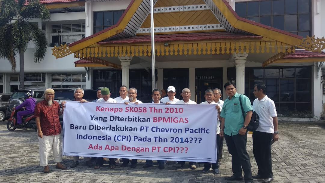 RIAUMANDIRI.ID, PEKANBARU - Para mantan karyawan PT Chevron Pacific Indonesia (PT CPI) yang tergabung dalam Forum Kesetaraan-058 (FK58) menghadiri undangan dari Dinas Ketenagakerjaan dan Transmigrasi Provinsi Riau untuk pertemuan tripartit atau mediasi antara para pensiunan PT CPI dengan pihak perusahaan tersebut, Jumat (29/11/2019).