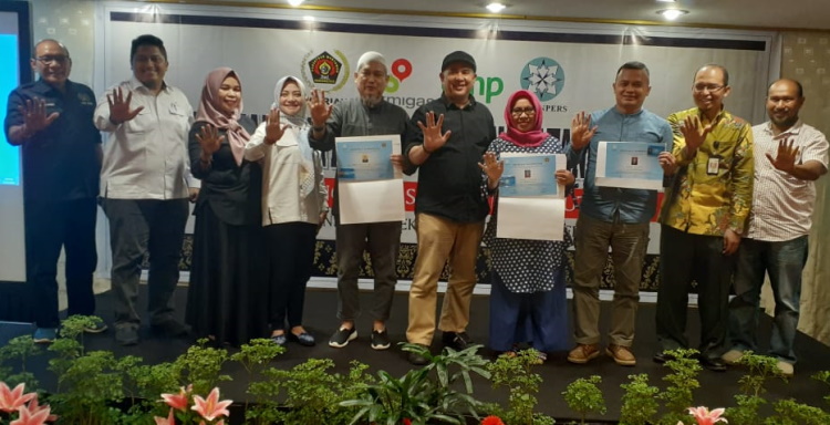 RIAUMANDIRI.ID, PEKANBARU – Persatuan Wartawan Indonesia (PWI) Provinsi Riau dan SKK Migas menyerahkan sertifikat dan kartu Uji Kompetensi Wartawan (UKW) angkatan XII, Selasa (10/12/2019.