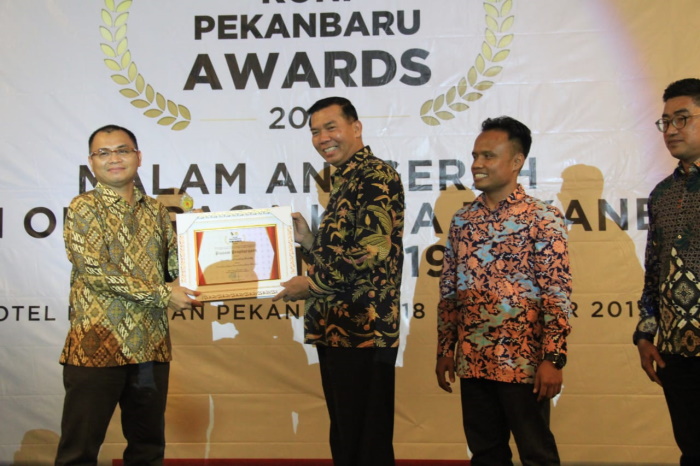Penghargaan diserahkan oleh wali kota Pekanbaru, Dr.Firdaus di salah satu hotel Pekanbaru yang disaksikan oleh ketua KONI Pekanbaru Aniz Murzil ST, dan ratusan tamu dan undangan.