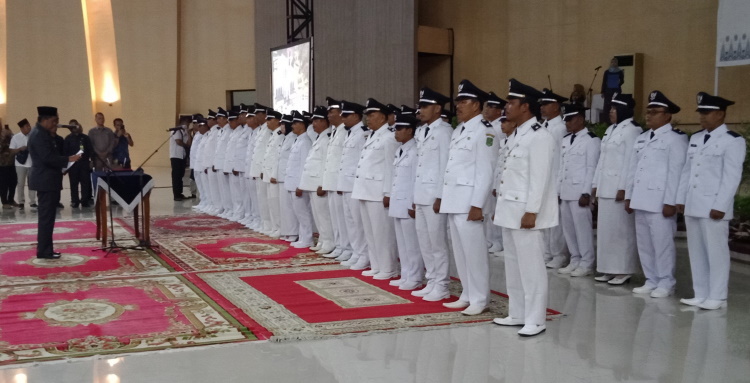 RIAUMANDIRI.ID, SIAK - Bupati Siak Alfedri melantik 37 Penghulu Kampung Periode 2019-2025, Jumat (27/12/2019) di Gedung Daerah Sultan Syarif Kasim II Kecamatan Mempura. Mereka adalah penghulu terpilih melalui proses Pemilihan Penghulu Kampung Serentak yang berlangsung 20 November 2019 lalu.