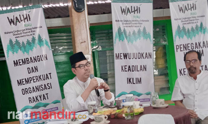 "Kalau mau nengok bumi ini berhenti berputar, serahkan kerja itu pada birokrat. Pengalaman seperti itu. Harusnya dengan pengalaman yang sudah-sudah pemerintah lebih bisa terbuka," ungkapnya saat menyuarakan pendapat pada diskusi publik megenai sawit ilegal Riau yang diadakan Walhi Riau, Jumat (10/1/2020).