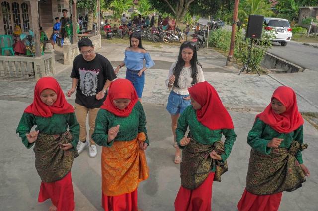 RIAUMANDIRI.ID, BENGKALIS - Sejumlah wisatawan negeri jiran Malaysia, Thailand dan Jakarta mengunjungi Kampung Meskom di Kabupaten Bengkalis, Riau, Sabtu (26/1/2020). Kunjungan wisatawan itu disambut tarian zapin yang merupakan tari khas daerah itu.