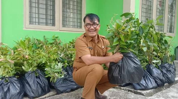RIAUMANDIRI.ID, KAMPAR UTARA - Sebanyak 5.000 bibit tanaman produksi, antara lain Durian, Nangka, Pinang, Mantoa, Gaharu, Kulay, dan lainya diterima Desa Sungai Jalau Kecamatan Kampar Utara dari Dinas Lingkungan Hidup dan Kehutanan (DLHK) Provinsi Riau.