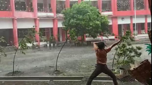 Aksi pelajar bak avatar ini viral, seakan hadir sebagai hiburan bagi seluruh warga kota yang panik mengetahui banyak pohon-pohon tumbang di jalanan. Video ini tersebar luas di status WhatsApp hampir semua warga Kota Patria ini.