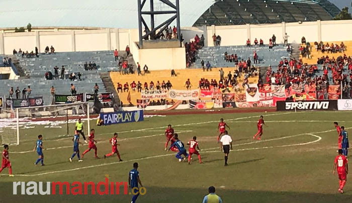 RIAUMANDIRI.ID, PEKANBARU - PSPS Riau sukses meraih poin penuh pada laga perdana Liga 2 Indonesia 2020, setelah membungkam tim kuat Semen Padang, dengan skor telak 3-0, di Stadion Kaharuddin Nasution, Rumbai, Ahad (15/3/2020) sore.