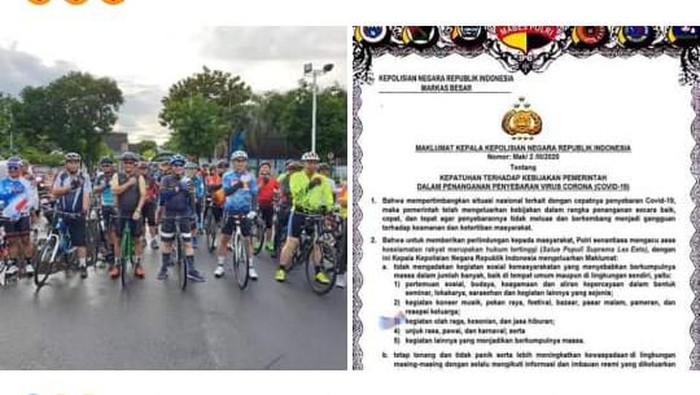 Kritik terhadap acara sepedaan itu diunggah oleh pemilik akun Facebook Ricky C Sondakh. Dia mengunggah foto kegiatan bersepeda tersebut disandingkan dengan foto maklumat Kapolri. Tangkapan layar posting-an Ricky C Sondakh pun beredar di grup WhatsApp.