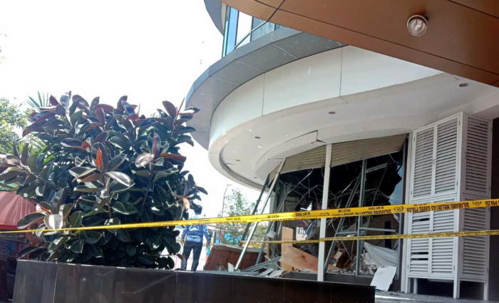 Informasi yang dihimpun, ledakan diduga berasal dari tabung gas di salah satu kafe yang ada di sana. Akibatnya, sebagian dari bangunan depan Ramayana Plaza rusak.