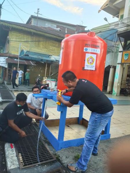 Antisipasi Penularan Covid-19, Karang Taruna Rohil Buat Tempat Cuci Tangan di Pasar