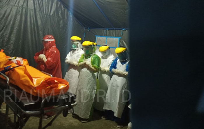 Pihak RSUD Teluk Kuantan langsung memberlakukan penanganan pasien Covid-19. Setelah dilakukan penanganan, 40 menit berselang pasien dinyatakan meninggal.
