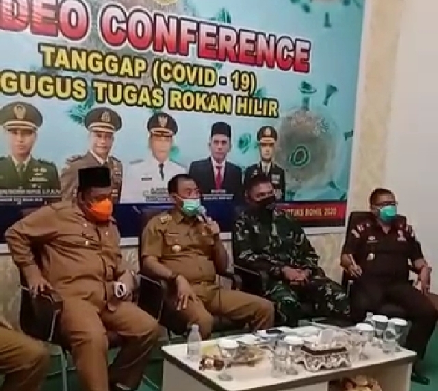Dalam video conference ini, Bupati Rohil didampingi Wakil Bupati Jamiluddin, Dandim 0321/Rohil Letkol Inf Agung Rahman Wahyudi, SIP, MIPol, Kepala Kejaksaan Negeri Gaos Wicaksono, SH, MH, Kapolres, Kadiskes Hj Dahniar dan Asisten I Setdakab Ferry H Parya.