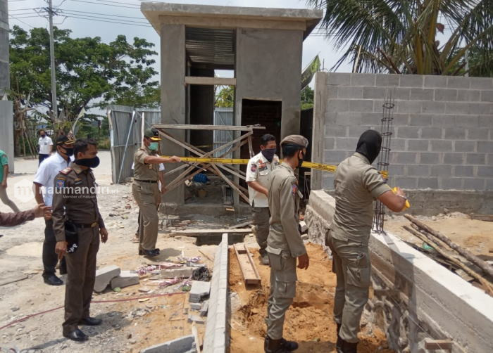 RIAUMANDIRI.ID, PEKANBARU – Satuan Polisi Pamong Praja (Satpol PP) Kota Pekanbaru menyegel bangunan yang akan dijadikan komplek perumahan diberi nama De Bale Residen, di Jalan Melati Kecamatan Tampan, Rabu (15/4/2020).