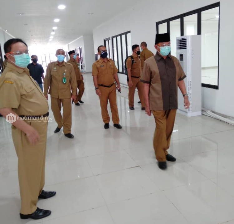 "Tinggal pembersihan dan penunjang," tutur Bupati usai meninjau pembangunan ruang isolasi tambahan RSUD Puri Husada Tembilahan, Selasa (5/5/2020).