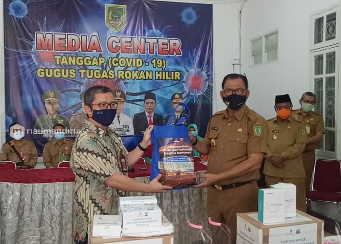 Kemarin, Gugus Tugas Covid-19 Kabupaten Rokan Hilir mendapatkan bantuan sebanyak 40 unit pakaian dekontaminasi (hazmat), 1.160 masker medis, dan 528 botol hand sanitizer yang diterima langsung oleh Bupati sekaligus Ketua Gugus Tugas Covid-19 Kabupaten Rokan Hilir, H. Suyatno.