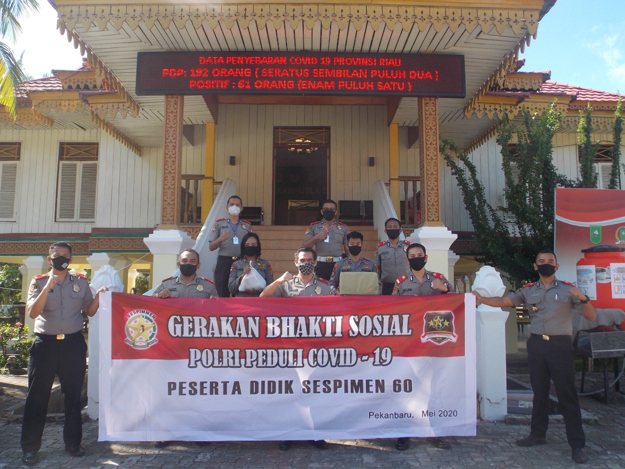 Sebelumnya pada pekan kemarin, peserta Lemdiklat Sespimmen Polri Dikreg-60 asal Polda Riau juga telah menyalurkan setidaknya 150 paket sembako.