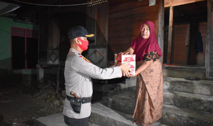 Selanjutnya Waka Polres beserta tim langsung berangkat menuju Kampung Godang, Desa Pulau Lawas, Kecamatan Bangkinang, mengantarkan nasi kotak ke rumah-rumah warga kurang mampu di daerah tersebut untuk makan sahur bagi mereka.