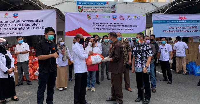 Pjs Kepala Perwakilan Sumbagut, Haryanto Syafri menyampaikan, dalam menghadapi pandemi Covid-19 ini, SKK Migas dan KKKS di Wilayah Provinsi Riau terus bersinergi dengan Pemerintah Kabupaten/Kota melalui pemberian bantuan, baik medical equipment maupun bantuan sembako dengan harapan dapat meringankan beban masyarakat yang terdampak Covid-19.