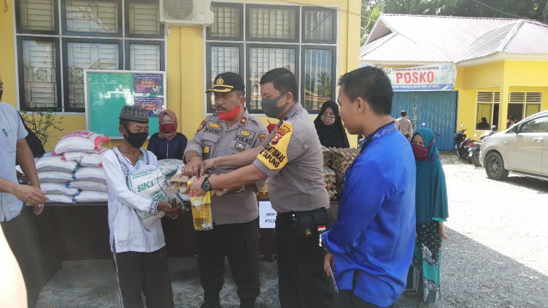 Bantuan diserahkan langsung oleh Kapolsek Tapung Kompol Sumarno bertempat di kantor Desa Petapahan Kecamatan Tapung, Jumat (15/5/2020). Ikut mendampingi Kapolsek Tapung Kompol Sumarno, Kanit Sabhara AKP Alizar, Panit I Intelkam Aipda Amit Elpian beserta anggota, Bhabinkamtibmas Petapahan Aipda Masri beserta Banit Binmas Aiptu Alriadi, Kepala desa Petapahan Said Aidil Usman, SE, dan staf Desa Petapahan beserta RT.