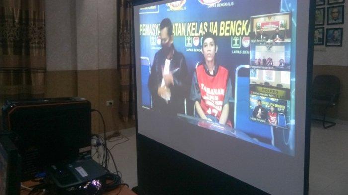 Dari kursi ruangan khusus Lapas Bengkalis, Jef Sparao didampingi kuasa hukumnya Khairul Majid, disambungan video conference Ketua Majelis Hakim Pengadilan Negeri Bengkalis Rudi Ananta Wijaya menanyakan kesiapannya mendengarkan putusan majelis.