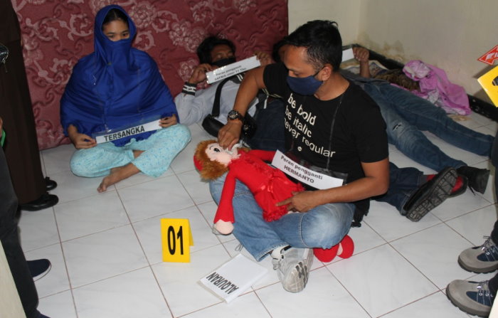 "Tadi ada 9 adegan rekontruksi yang diperagakan dalam kasus itu. Mulai dari tersangka J yakni ibu korban yang membiarkan suaminya (tersangka, red) memasukkan Alquran yang disobek ke mulut korban yakni anak kandungnya," kata Ambarita, Kamis (4/6/2020).