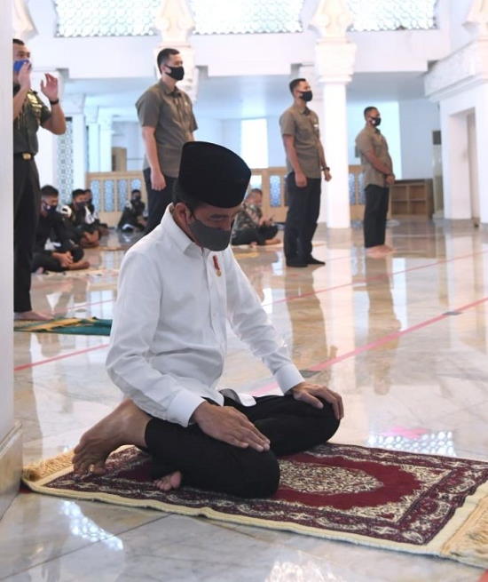 RIAUMANDIRI.ID, JAKARTA – Presiden Joko Widodo (Jokowi) melaksanakan salat Jumat di Masjid Baiturrahim, Kompleks Istana Kepresidenan, Jakarta, Jumat (5/6/2020).