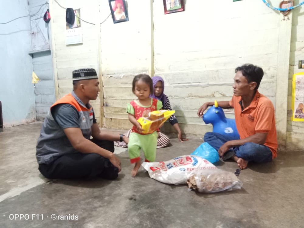 RIAUMANDIRI.ID, PEKANBARU - Relawan Inspirasi Rumah Zakat mengunjungi rumah keluarga Rika Maria, ibu rumah tangga yang diadili karna mencuri tiga tandan kelapa sawit milik PTPN V dengan alasan untuk makan anaknya, Jumat (5/6/2020).