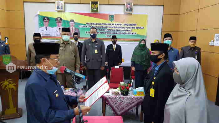 RIAUMANDIRI.ID, TEMBILAHAN - Bupati Kabupaten Indragiri Hilir, HM Wardan melantik 210 Pejabat Kepala Sekolah dan Pejabat Fungsional Pengawas Sekolah se-Kabupaten Inhil, Jumat (12/6/2020).