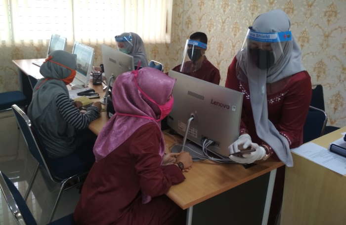 Untuk petugas tampak menggunakan face Shield, masker dan sarung tangan.