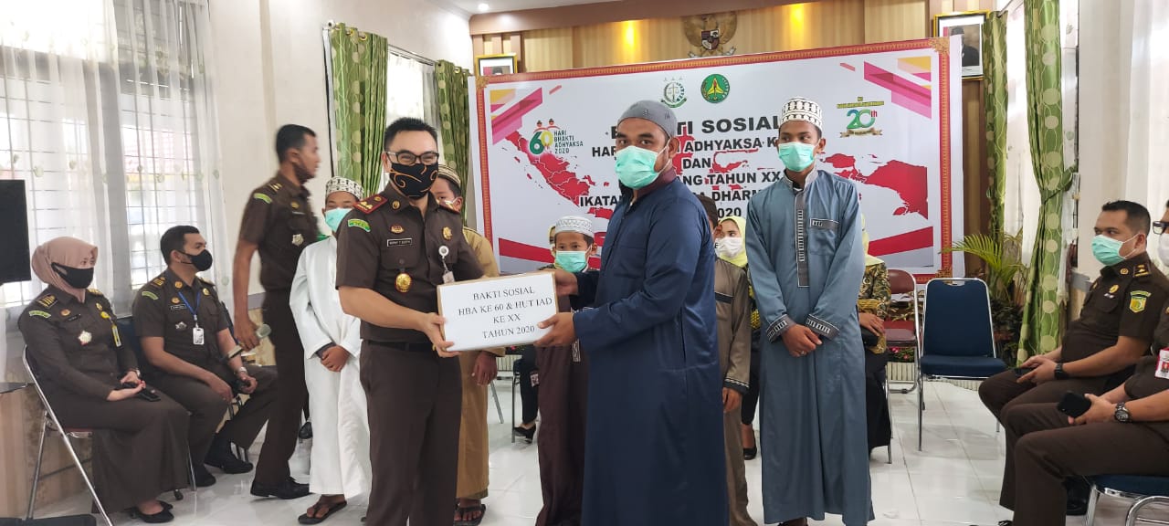 RIAUMANDIRI.ID, PANGKALAN KERINCI - Dalam rangka Hari Bakti Adhyaksa (HBA) ke-60 serta Hari Ikatan Adhyaksa Dharma Karini (IAD) ke-20, Kejaksaan Negeri (Kejari) Pelalawan menggelar kegiatan bakti sosial dengan menyerahkan bantuan berupa sembako kepada Pondok Tahfiz Alquran dan Dhuafa Pangkalan Kerinci. Selain itu juga kepada petugas cleaning service dan juga tenaga honorer Kejari Pelalawan, Rabu (15/7/2020).