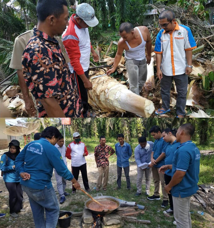 Tanaman sawit ternyata memiliki nira yang bisa diolah menjadi gulah merah. Ini terbukti saat tim pengabdian masyarakat Unri yang diketuai oleh Dr Adianto, MSi mempraktikkannya langsung di hadapan masyarakat bersama Kamto, sang inovator pengolah nira sawit menjadi gulah merah.