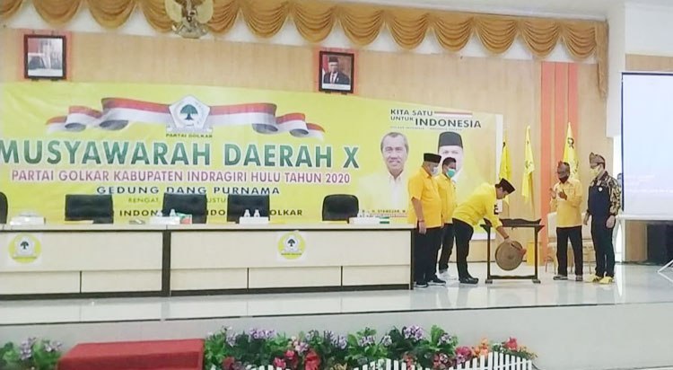 RIAUMANDIRI.ID, RENGAT – Musda Partai Golkar X DPD II Kabupaten Indragiri Hulu diwarnai aksi saling dorong dan nyaris terjadi baku hantam pada Rabu (26/8/2020) malam di Gedung Dang Purnama Rengat.