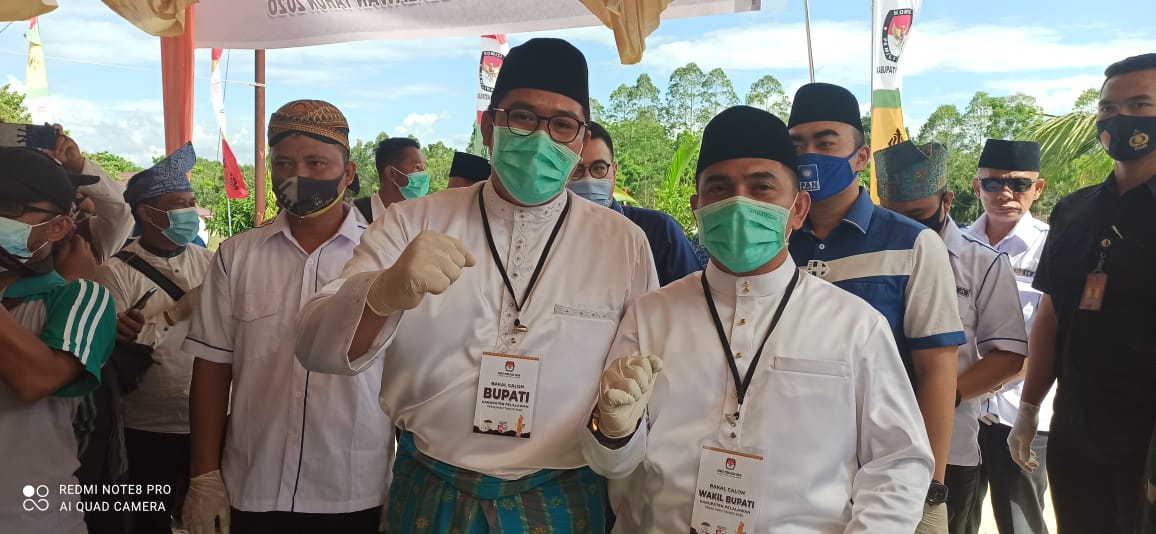 Paslon ini tiba pukul 15.00 WIB diiringi pimpinan partai pengusung dan juga puluhan pendukung. Protokol kesehatan pun diterapkan secara ketat saat proses pendaftaran di KPU Kabupaten Pelalawan ini.