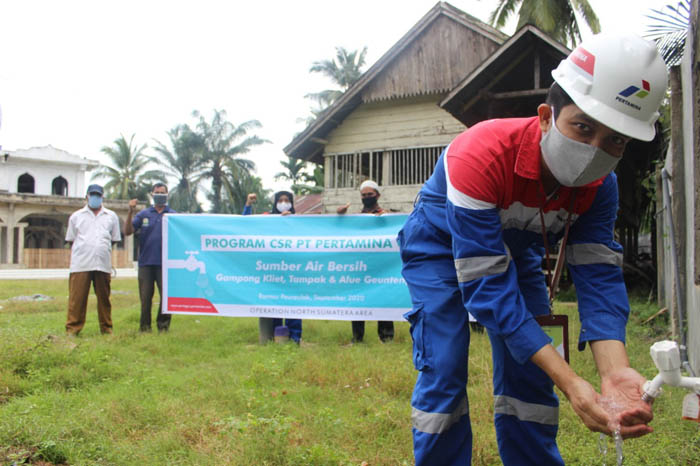 RIAUMANDIRI.ID, RANTAU PEUREULAK – PT Pertamina Gas selaku afiliasi subholding gas PT PGN Tbk melakukan pengeboran sumur air bersama kelompok masyarakat. Upaya ini dilakukan untuk mengatasi masalah tiga desa di sekitar area operasi Pertagas Operation North Sumatera Area (ONSA) yang selama ini mengalami kesulitan terhadap akses air bersih. “Selama ini kami harus mengambil air dari sungai yang cukup jauh,” ujar Keuchik Gampong Kliet, Yusri, Jumat (2/10/2020).