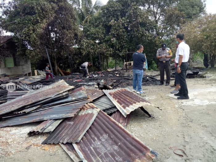 RIAUMANDIRI.ID, Pangkalan Kerinci - Satu unit rumah yang terbuat dari kayu habis, hangus terbakar dilahap sijago merah di Desa Kemang Kecamatan Pangkalan Kuras, Kabupaten Pelalawan, Riau, Senin (23/11) pagi. Rumah tersebut adalah milik Ernawati (39), seorang ibu rumah tangga.