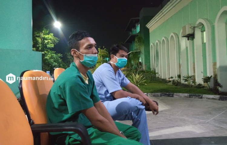 Pada Rabu, 17 Februari 2021 kira-kira pukul 03.00 WIB lalu, Riaumandiri.co menemui nakes rumah sakit khusus Covid-19 ini untuk melihat aktifitas mereka di malam hari.
