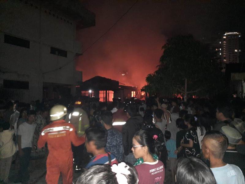 Kebakaran diketahui tejadi sejak pukul 20.45 WIB, dalm peristiwa ini tidak korban jiwa, hanya kerugian materill yang belum ditaksir.