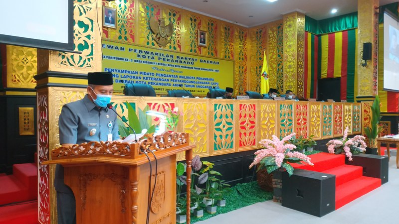 Dewan Perwakilan Rakyat Daerah (DPRD) Kota Pekanbaru menggelar Rapat Paripurna ke II Masa Sidang II Tahun Sidang 2020-2021 tentang Penyampaian Pidato Pengantar Wali Kota Pekanbaru Tentang Laporan Keterangan Pertanggungjawaban (LKPj) Akhir Tahun Anggaran 2020, Senin (29/3).