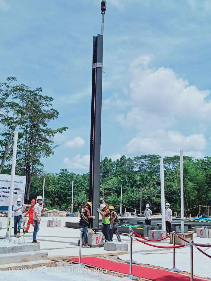 "Inshaa Allah, tanggal 13 Juli 2021 mendatang, Workshop ini akan selesai dibangun. Pembangunanya sendiri sudah dimulai sejak 2 November 2020 yang lalu. Dengan target biaya keseluruhan Rp8 miliar lebih yang berasal dari YPCR," jelas Ketua Yayasan Politeknik Caltex Riau Azhar dalam sambutannya pada acara Peletakan Tiang Struktur Pertama Pembangunan Mekanikal & Elektrikal Workshop di Politeknik Caltex Riau, Selasa (6/4/2021).