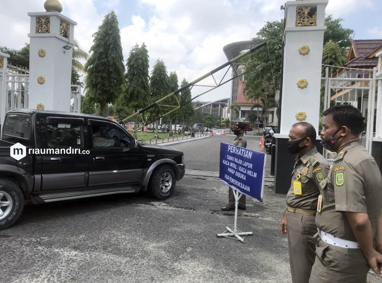 RIAUMANDIRI.CO, PEKANBARU – Pemerintah Provinsi Riau mulai melakukan penjagaan dan pemeriksaan ketat di gerbang Kantor Gubernur Riau, setelah mendapat keluhan dari Gubernur Syamsuar terkait masih lemahnya penjagaan di Kantor Gubernur Riau, termasuk di kediaman Gubernur Jalan Diponegoro, di mana banyak orang yang keluar masuk tanpa ada izin dari pimpinan.