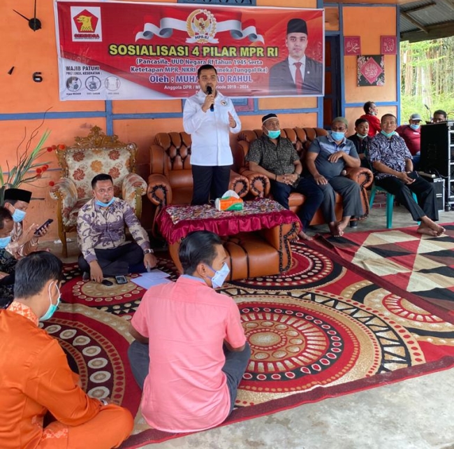 RIAUMANDIRI.ID, ROKAN HULU – Anggota Komisi III DPR RI dari Daerah Pemilihan Riau 1, Muhammad Rahul kembali melakukan sosialisasi Empat Pilar di Desa Aliantan, Kecamatan Kabun, Kabupaten Rokan Hulu - Riau, Sabtu (20/3/2021).