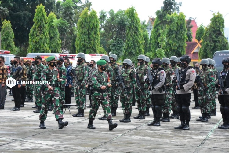 Apel gelar pasukan pengamanan ini elah dilakukan di halaman Kantor Gubernur Riau, Selasa (18/5/2021). Apel gelar pasukan dipimpin langsung oleh Panglima Kodam (Pangdam) I/Bukit Barisan, Mayjen TNI Hassanudin.