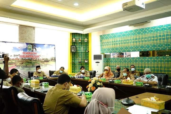 Arfan Usman menyampaikan, situasi pandemi Covid-19 saat ini, membatasi jumlah orang yang hadir dalam ruangan pelantikan tersebut. Sehingga Pemda Siak membuat inisiatif untuk menyediakan tempat khusus agar pejabat, tokoh masyarakat serta rekan-rekan media dapat menyaksikan prosesinya melalui zoom meeting.