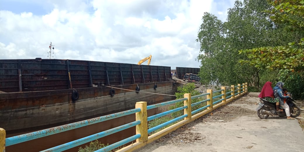 Penghulu Kampung Buantan Besar, Suwanto menjelaskan, awalnya ia diberitahu oleh pihak PT Modern Widya Technical bahwa akan menaikan base dari kapal ponton.