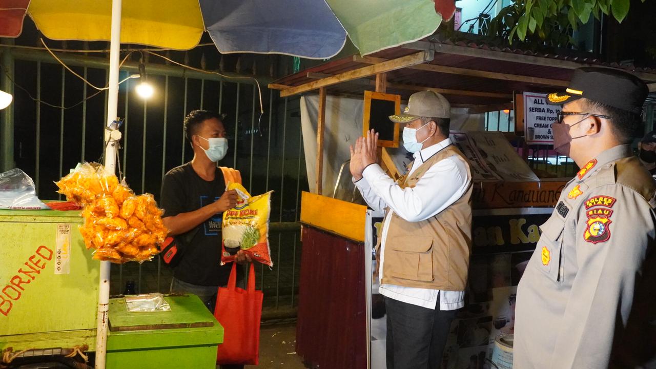 "Kegiatan malam ini kita bagi menjadi 3 bagian. Patroli bersekala besar dipimpin langsung oleh Wakapolres Kompol Irnanda, operasi yustisi dan penertiban prokes dipimpin Kabag Ops, sedangkan kami bersama Bapak Bupati memberikan bantuan sosial kepada warga masyarakat kita yang terdampak oleh PPKM selama pandemi ini, seperti pedagang yang memang dibatasi jam operasional nya," Ujar Gunar.