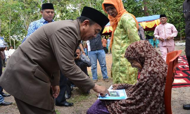 Bengkalis (HR)– Sebanyak 44 KK dari 15 desa/kelurahan se-Kecamatan Bengkalis memperoleh bantuan rumah layak huni dari Pemerintah Kabupaten Bengkalis, Jumat (17/4). Penyerahan kunci RLH dilakukan Bupati Bengkalis H Herliyan Saleh saat menghadiri acara pelantikan Penjabat Kepala Desa Pangkalang Batang, Pedekik dan Sungai Alam yang dipusatkan di Desa Pangkalan Batang.