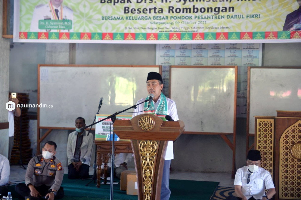 "Mudah-mudahan santri dan santriwati di sini menjadi insan yang beriman, dan berdoalah agar negeri ini mendapat rahmat dari Allah, terhindar dari musibah," ujar Syamsuar.