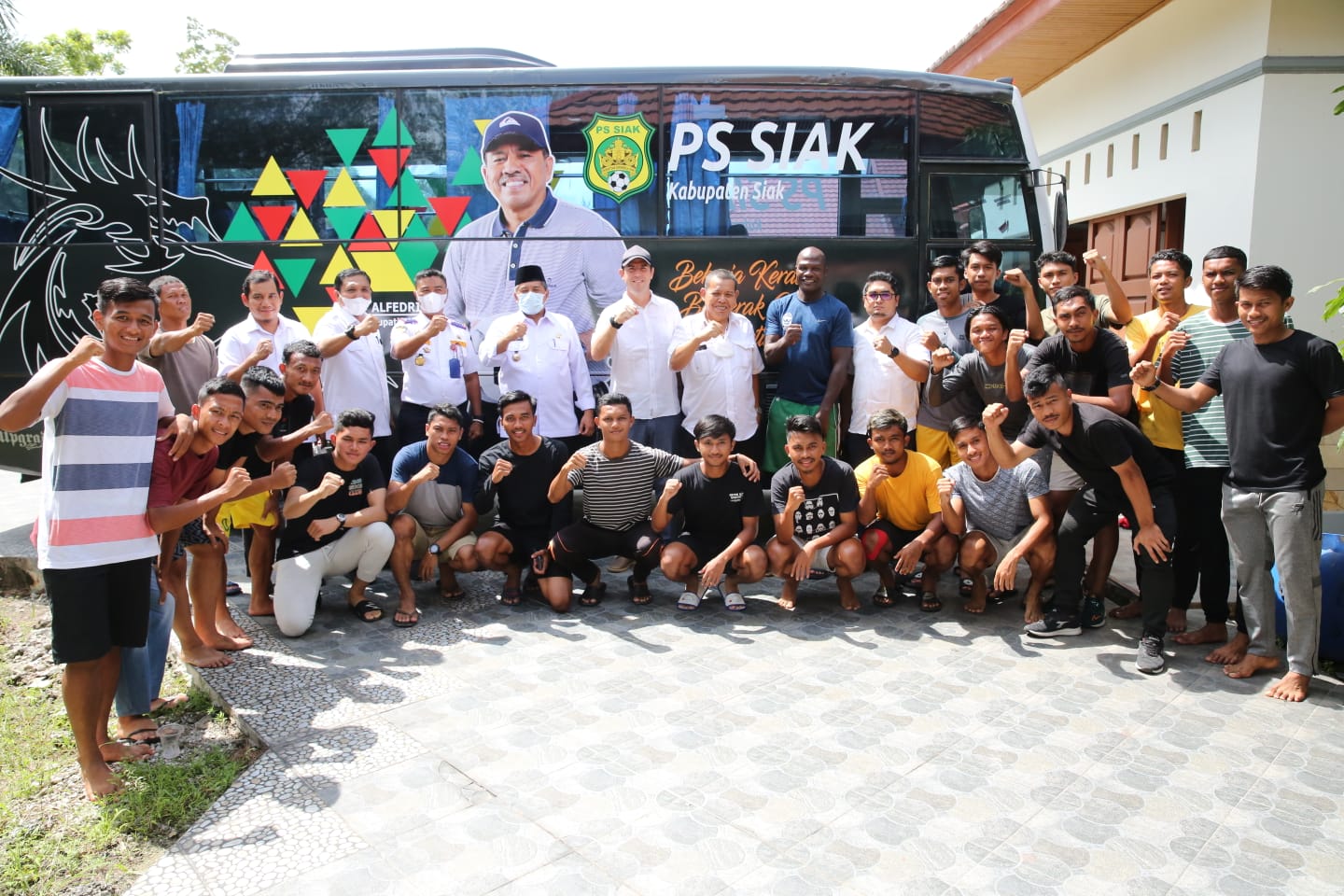 RIAUMANDIRI.CO - Sebagai bentuk dukungan Bupati Siak Alfedri kepada PS Siak yang akan mengikuti Kompetisi Liga 3 Asprov Riau yang digelar pada tanggal 6 November 2021 mendatang.