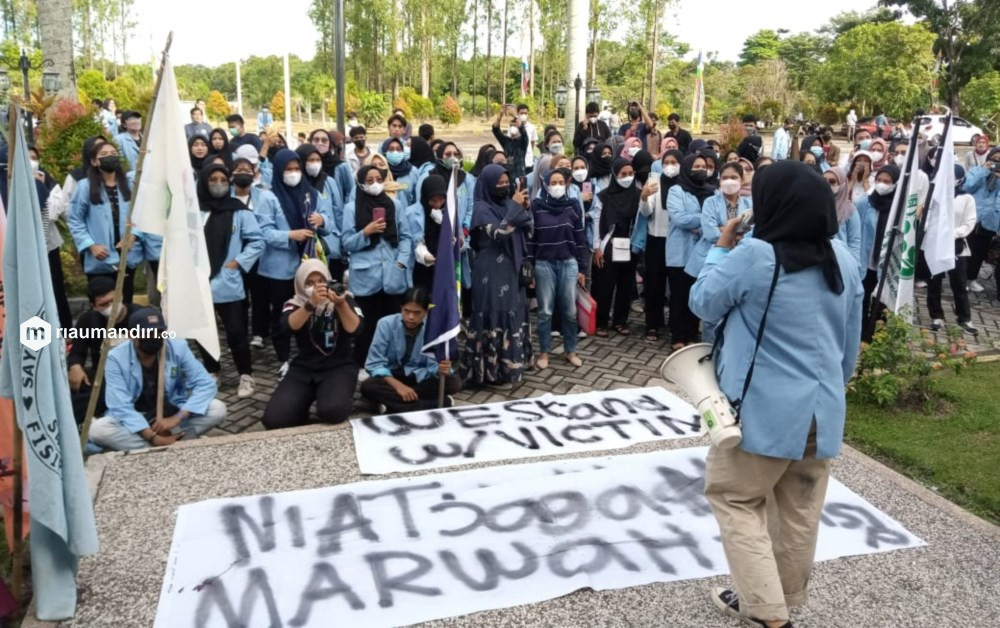 RIAUMANDIRI.CO - Mahasiswi-mahasiswi UNRI yang turut menyuarakan keadilan atas kasus yang menimpa rekan mereka yang diduga dilecehkan oleh oknum dosen sekaligus dekan dan calon rektor, buka-bukaan terkait kasus serupa di kampus tersebut.